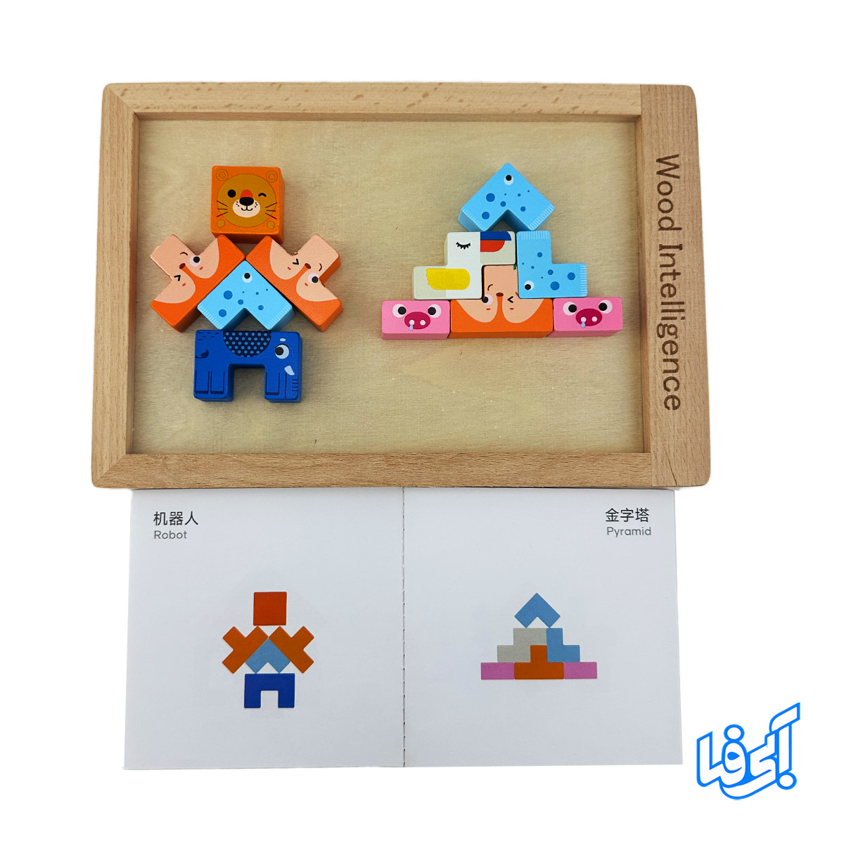 اسباب بازی پازل چوبی جورچین حیوانات 40 تیکه همراه دفترچه راهنما برای آشنایی کودک با حیوانات