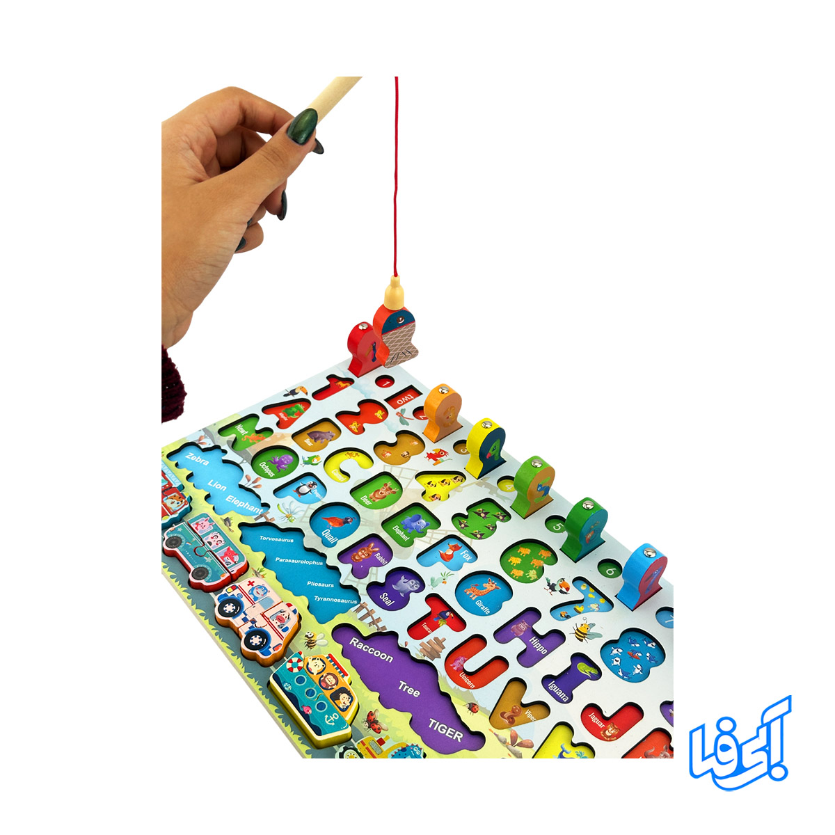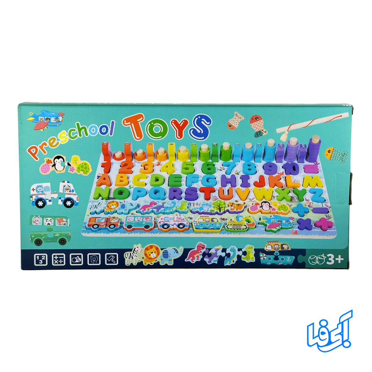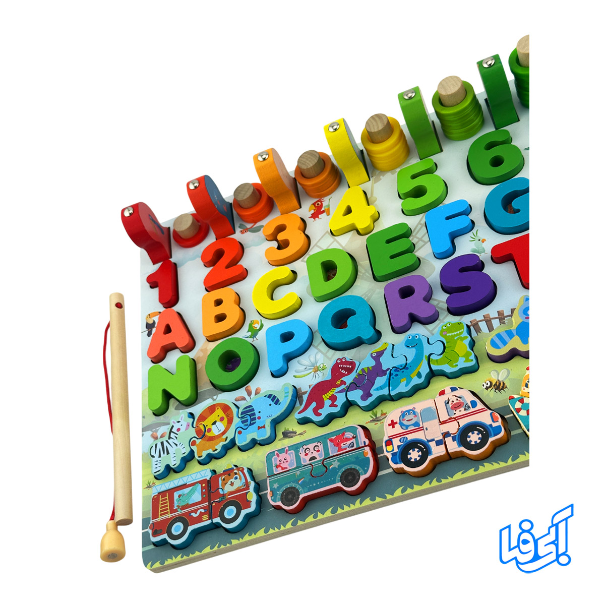 اسباب بازی مونتهسوری پازل چوبی شش در یک وسیلهی آموزشی کامل و جذاب برای کودکان بالای ۳ سال است که تمام بخشهای یادگیری اولیه زبان و اعداد را روی یک تخته چوبی در اختیار کودک قرار میدهد. این بازی شامل حروف انگلیسی، اعداد، حیوانات، وسایل نقلیه و آموزش جمع و تفریق به همراه قلاب چوبی برای تقویت مهارتهای حرکتی ظریف کودک میباشد.